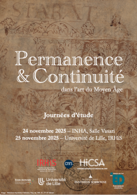 Organisées par Hugo Dehongher (doctorant en histoire de l’art médiéval, IRHiS-ULille), Angèle Desmenez (doctorante en histoire de l’art médiéval, IRHiS-ULille), Max Hello (doctorant en histoire de l’art médiéval, HiCSA-UParis 1 Panthéon Sorbonne), Pierre Moyat (doctorant en histoire de l’art médiéval, HiCSAUParis 1 Panthéon Sorbonne)